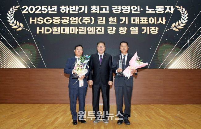 ‘최고 노동자 상’은 HD현대마린엔진 강창열 기장이 차지했다. 강 기장은 30년간 설비보전 분야에서 쌓은 노하우로 공기 압축기 고장, 윤활유 정화기 누유 등 복합 설비 문제를 스스로 진단·해결해 외주 비용을 절감하고 설비 신뢰성과 생산효율을 높였으며, LGIP 밸브 작업용 고정발판 제작·설치 등 현장 맞춤형 아이디어로 안전사고 예방과 작업환경 개선에 기여했다.
