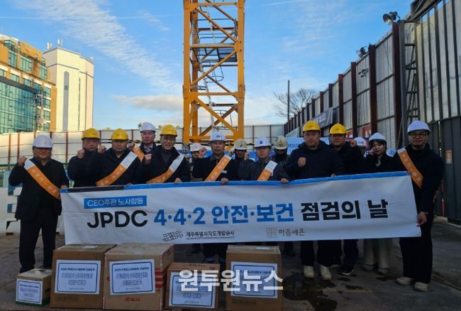 (원투원뉴스) 제주특별자치도개발공사(사장 백경훈)는 지난 23일 겨울철 한파로 인한 건설현장 근로자의 안전사고를 예방하고, 안전한 작업 여건을 조성하기 위해 혹한기 한랭질환 예방활동과 CEO 주관 노사합동 4·4·2 안전점검을 실시했다.