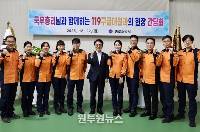(원투원뉴스) 김민석 국무총리는 12월 22일 서울 종로소방서를 방문하여 응급환자이송체계 최일선에 있는 119구급대원의 의견을 듣는 자리를 가졌다.