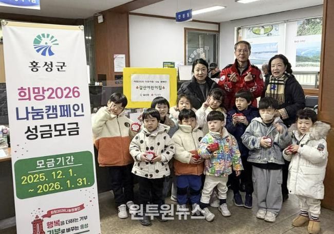 (원투원뉴스) 홍성군은 갈산어린이집 원아와 교직원들이 지난 23일 갈산면 행정복지센터를 방문해 어려운 이웃을 돕기 위한 ‘사랑의 저금통’을 전달했다고 밝혔다.