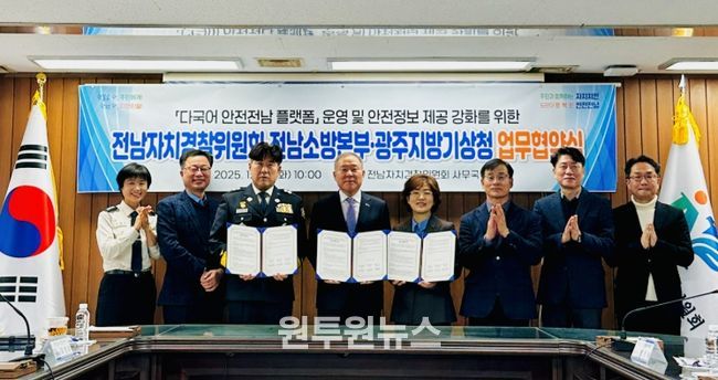 (원투원뉴스) 전남자치경찰위원회는 전남소방본부, 광주지방기상청과 지난 23일 업무협약을 해 외국인의 안전한 생활을 보호하고 지원하는 다국어 안전전남 앱 운영과 안전정보 제공을 한층 강화하기로 했다.