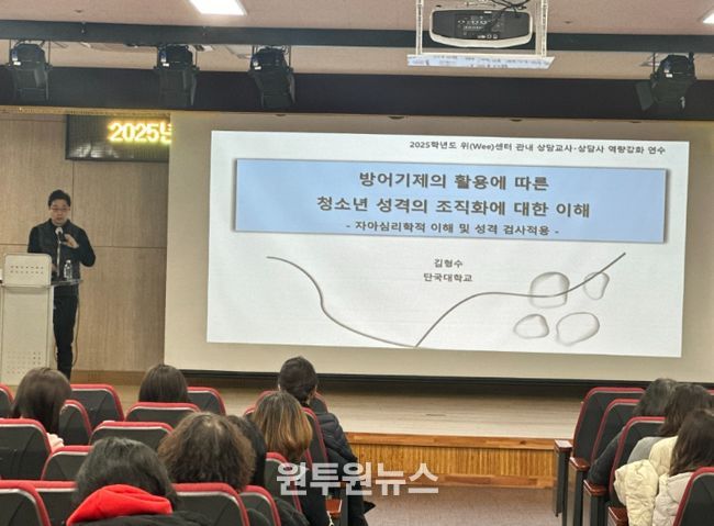 연수는 단국대학교 상담심리 전공 김형수 교수가 ‘방어기제의 활용에 따른 청소년 성격의 조직화에 대한 이해’를 주제로 자아심리학적 관점의 청소년 이해와 방어기제 유형별 성격 분석, 성격 검사 적용 방법 등 실무 중심 강의를 진행했다.