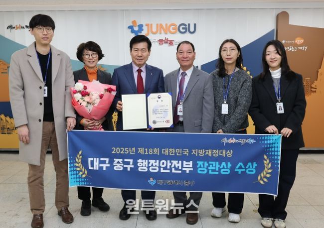 (원투원뉴스) 대구 중구는 행정안전부가 주관한 ‘2025년 제18회 대한민국 지방재정대상’에서 우수사례로 선정돼 행정안전부 장관상을 받고, 특별교부세 1억 원을 확보했다.