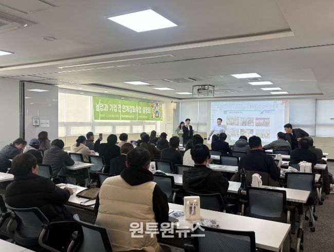 설명회 1부에서는 '농업과 기업 간 연계강화사업'의 주요 내용을 중심으로 ▲참여 대상 및 자격 요건 ▲지원 범위 등 실무에 필요한 항목을 상세히 안내했다.