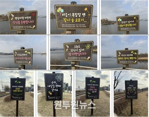 (원투원뉴스) 의왕시 보건소가 최근 백운호수와 왕송호수 생태탐방로에 투신사고 예방과 자살예방사업 홍보를 위해 ‘로고젝터’와 ‘우드사인’을 설치했다고 밝혔다.