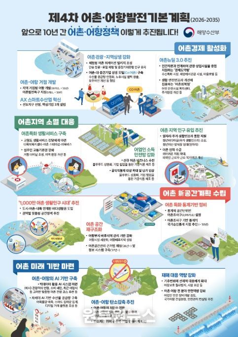 (원투원뉴스) 해양수산부는 12월 24일 국무총리 주재로 열린 ‘제8회 국가정책조정회의’에서 어촌·어항의 지속가능성을 확보하기 위한 '제4차 어촌·어항발전기본계획(2026~2035)'이 확정됐다고 밝혔다.