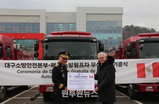 엄준욱 대구소방안전본부장은 “이번에 지원하는 소방자동차가 페루 현지 재난에 실질적으로 활용돼 국민의 안전에 기여하길 바란다”며, “앞으로도 양국 간 우호 협력 증진과 소방안전 환경 개선을 위해 지속적으로 노력하겠다”고 말했다.