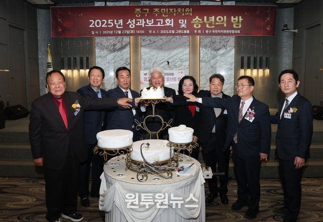 (원투원뉴스) 부산 중구는 12월 23일 코모도호텔에서 중구 주민자치위원장협의회 주최로 '2025년 중구 주민자치회 성과보고회 및 송년의 밤' 행사를 개최했다.