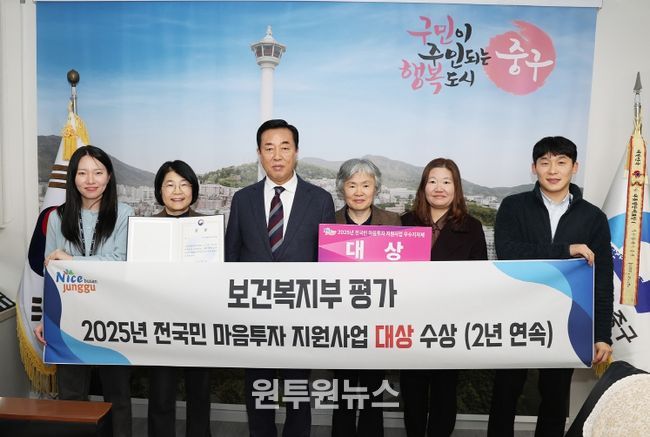 (원투원뉴스) 부산 중구는 보건복지부가 주관한 2025년 전국민 마음투자 지원사업 우수지자체 평가에서 대상을 수상했다.