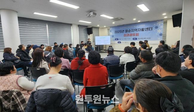 (원투원뉴스) 화순군은 위탁 지원하는 화순지역자활센터(센터장 설진국)가 지난 23일 화순희망센터 교육실에서 자활근로사업 참여자와 화순군 관계자, 유관기관 관계자 등 70여 명이 참석한 가운데'2025년 화순지역자활센터 성과공유회'를 개최했다고 밝혔다.