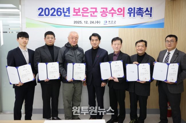 (원투원뉴스) 충북 보은군은 24일 군청 회의실에서 2026년 가축방역사업의 원활한 추진과 청정 축산지역 유지를 위해 군내 개업 수의사 8명에게 공수의 위촉장을 수여했다.