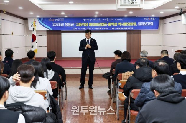 (원투원뉴스) 장흥인재육성장학가 지난 22일 군민회관에서 중·고등학생 해외비전캠프 및 역사문화탐방 결과 보고회를 개최했다.