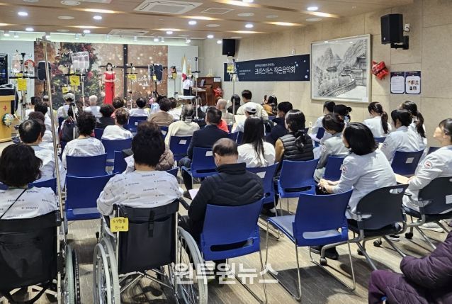 (원투원뉴스) 영주적십자병원(병원장 장석)은 지난 12월 22일 일요일 오후 2시, 병원에서 ‘크리스마스 작은음악회’를 개최해 환자와 보호자, 지역주민들이 함께 어우러지는 뜻깊은 성탄의 시간을 마련했다.