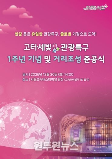 (원투원뉴스) 서울 서초구는 고터·세빛 관광특구 지정 1주년을 맞아 오는 30일 14시 서울고속터미널 광장 일대에서 관광특구의 본격적인 도약을 알리는 '고터·세빛 관광특구 1주년 기념 및 거리조성 준공식'을 개최한다고 밝혔다.