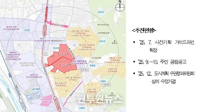 (원투원뉴스) 서울시는 2025년 12월 24일 '제14차 도시계획위원회 신속통합기획 정비사업 등 수권분과위원회'를 개최하여 ‘독산동 1036일대(독산1구역)’과 ‘독산동 1072 일대(독산2구역)’ 주택정비형 재개발사업 정비구역 지정 및 정비계획 결정(안)을 '수정가결' 했다고 밝혔다.