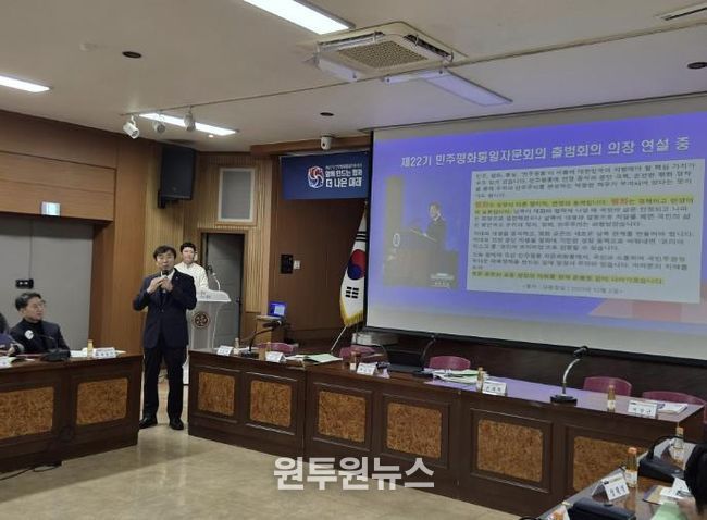 (원투원뉴스) 민주평화통일자문회의 홍성군협의회는 지난 24일 홍성군청 대강당에서 자문위원 50명이 참석한 가운데‘화해·협력의 남북 관계 재정립을 위한 정책 방향’을 주제로‘2025년 4분기 정기회의’를 개최했다.