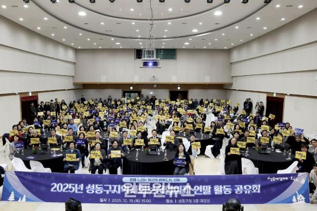 (원투원뉴스) 서울 성동구는 지난 12월 18일 오후 3시 성동구청 3층 대강당에서 '2025년 성동구지역사회보장협의체 연말 활동 공유회'를 성공적으로 개최했다고 밝혔다.