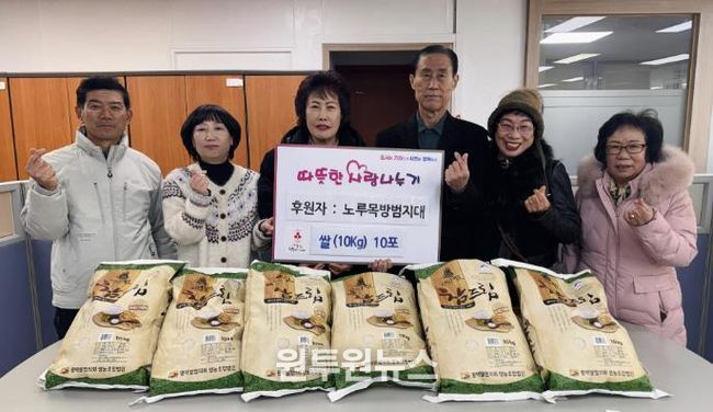 이번 전달된 쌀은 자율방범 순찰연합대 노루목지대 회원들이 뜻을 모아 마련한 것으로 관내 생활이 어려운 가정에 배부하여 취약계층의 식생활 지원에 활용될 예정이다.