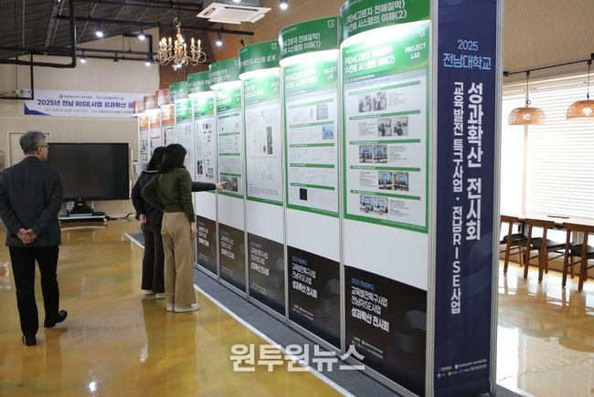 전남대 전남RISE사업단과 여수시교육특구사업단은 23일 여수캠퍼스 청경마루에서 2025년 한 해 동안의 성과를 집약한 전시회를 열었다.