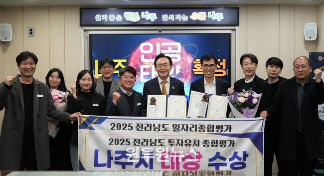나주시는 지난 24일 여수엑스포컨벤션센터에서 열린 ‘2025년 전라남도 일자리·경제 한마당’ 행사에서 일자리 창출과 투자유치 2개 부문에서 각각 최고상인 ‘대상’을 수상했다고 26일 밝혔다.
