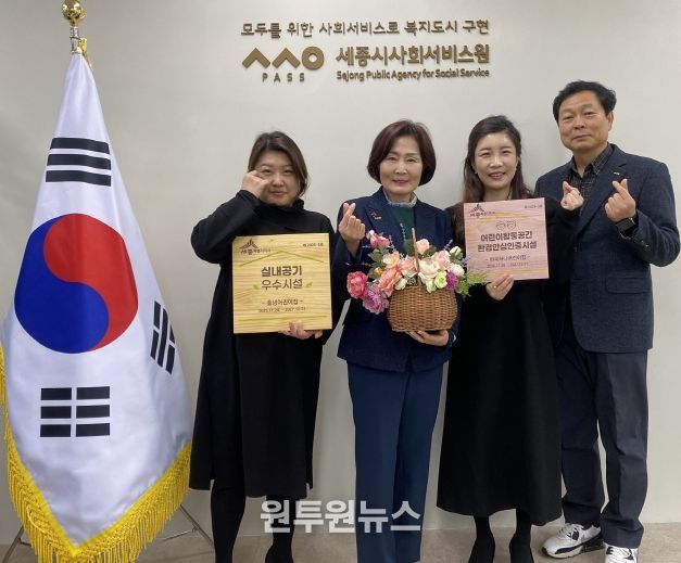(원투원뉴스) 세종시사회서비스원(원장 김명희)이 운영하는 충녕어린이집과 반곡하나어린이집이 세종특별자치시로부터 지난 19일 ‘2025년 실내 공기질·어린이활동공간 우수시설’로 지정됐다.