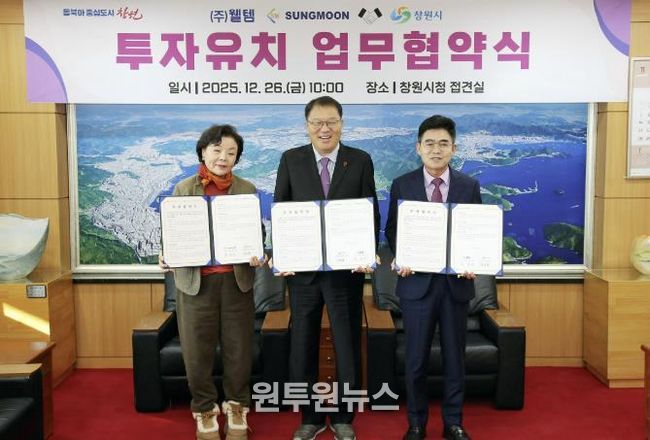 (원투원뉴스) 창원특례시는 26일 시청 접견실에서 ㈜웰템, 성문(주) 2개 기업과 총 234억 원 규모의 투자와 70명 신규 고용을 내용으로 하는 투자협약(MOU)을 체결했다고 밝혔다.