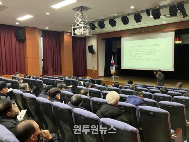 이어 김병준 팀장은 ‘배나무 살균제 활용기술(검은별무늬병)’을 주제로 △예방·치료 살균제의 적기 처리 방법 △검은별무늬병 군별 약제 정리 △2026년 배 과원 실천 기술 △전정·시비의 균형 관리 등 현장 적용 중심의 내용을 상세히 설명했다.