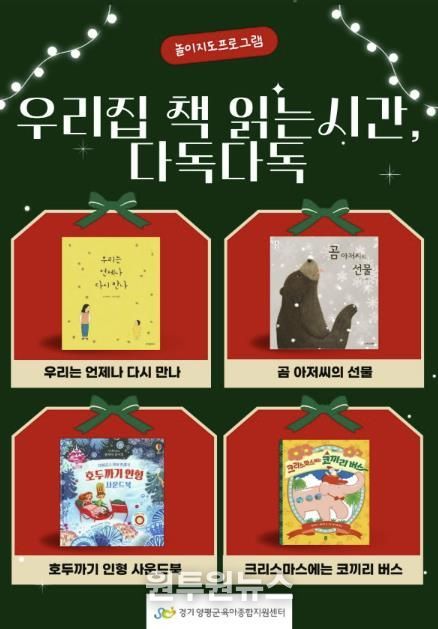 (원투원뉴스) 양평군육아종합지원센터는 연말을 맞아 관내 영유아 가정을 대상으로 가정에서 실천할 수 있는 부모교육과 놀이·독서 연계 프로그램을 운영했다.