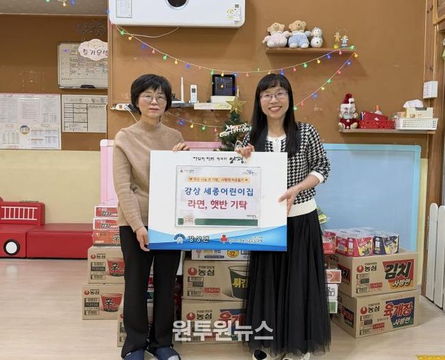 (원투원뉴스) 양평군 강상면은 지난 24일 강상면 병산리에 위치한 세종어린이집에서 라면과 즉석식품 등 이웃 돕기 후원 물품을 기탁했다고 밝혔다.