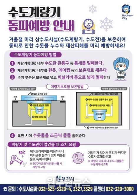 김상수 부천시 재난안전과장은 “올겨울 들어 가장 강한 한파가 예보된 만큼, 취약계층 보호와 수도관 동파 예방 등 시민 생활과 직결된 분야에 대응 역량을 집중하고 있다”며 “시민 여러분도 한파 행동 요령과 동파 예방 수칙을 꼭 실천해 주시길 바란다”고 말했다.