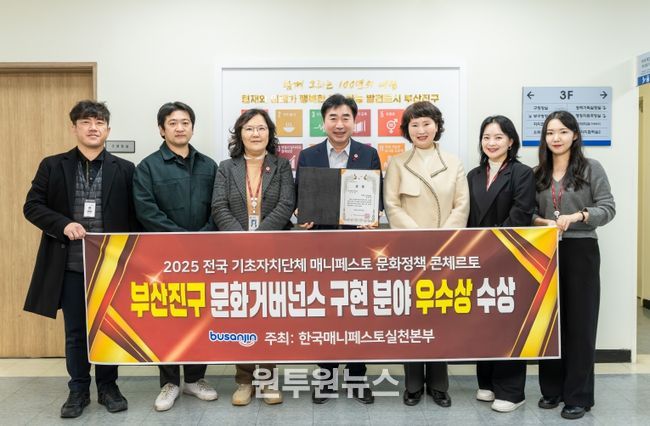 (원투원뉴스) 부산진구는 23일 강원도 원주시 상지대학교에서 열린 ‘2025 매니페스토 문화정책 콘체르토’에서 문화거버넌스 구현 분야 우수상을 수상했다.