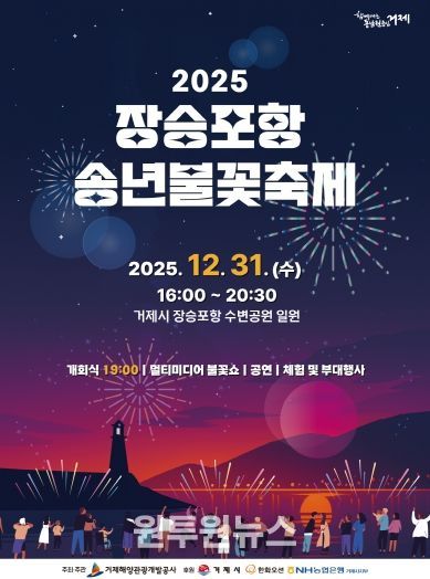 거제해양관광개발공사(사장 지영배)는 오는 31일 거제시 장승포항 수변공원 일원에서‘2025 장승포항 송년불꽃축제’를 개최한다.