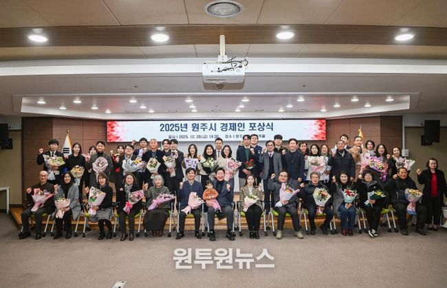 (원투원뉴스) 원주시는 26일 오후 2시 30분, 시청 지하1층 다목적홀에서 ‘2025년 원주시 경제인 포상식’을 개최했다.