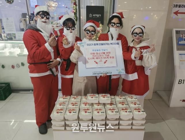 (원투원뉴스) 케이크 전문점 ‘새겨담다’는 지난 24일, 아동·청소년이 있는 가구를 위한 성탄절 기념 케이크 65개를 직접 제작해 고양시일산종합사회복지관에 전달했다.