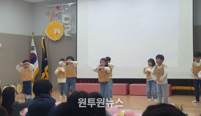 1부에서는 가온1·2반 유아들이 준비한 오카리나 연주와 우리나라 놀이를 주제로 한 놀이 뮤지컬 공연이 펼쳐졌다. 사물놀이 ‘농악’, 소고춤 ‘청개구리 타령’, 전래놀이를 접목한 무대를 통해 유아들은 놀이 속에서 배우고 성장한 경험을 자신감 있게 표현했다.