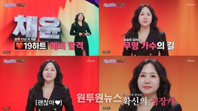 이날 방송에서 채윤은 이은하 원곡의 ‘겨울 장미’를 열창했다. 특유의 짙은 음색과 세월이 묻어나는 감정 표현으로 마스터 심사위원들은 물론, 시청자들의 마음까지 울리며 깊은 여운을 남겼다. 그 결과 채윤은 총 19하트를 받으며 예비 합격자가 됐다.