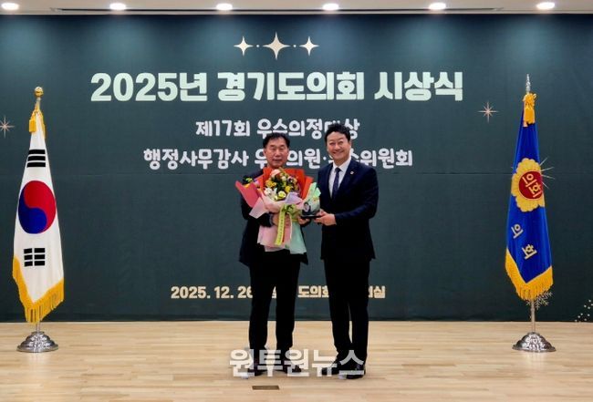 (원투원뉴스) 경기도의회 농정해양위원회 부위원장 윤종영(국민의힘, 연천)이 2025년 행정사무감사 활동을 통해 정당과 의회 양측으로부터 연이어 우수성을 공식 인정받았다.