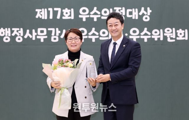 (원투원뉴스) 경기도의회 성복임 의원(더불어민주당, 군포4)이 26일 대한민국시도의회의장협의회가 시상하는 '제17회 우수의정대상'을 수상했다.