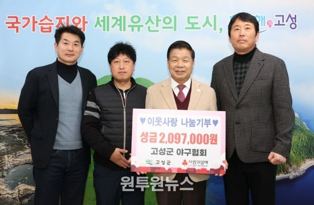 (원투원뉴스) 고성군 야구협회(협회장 신용락)는 12월 26일, 고성군을 방문하여 어려운 이웃에게 써달라며 이웃돕기 성금 209만 7천 원을 기탁했다.