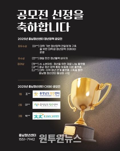 (원투원뉴스) 충청남도는 도정에 반영 가능한 우수 청년정책을 발굴하기 위해 추진한 '2025년 충청남도 청년정책 공모전' 심사를 마무리하고, 총 5건의 수상작을 선정했다고 밝혔다.