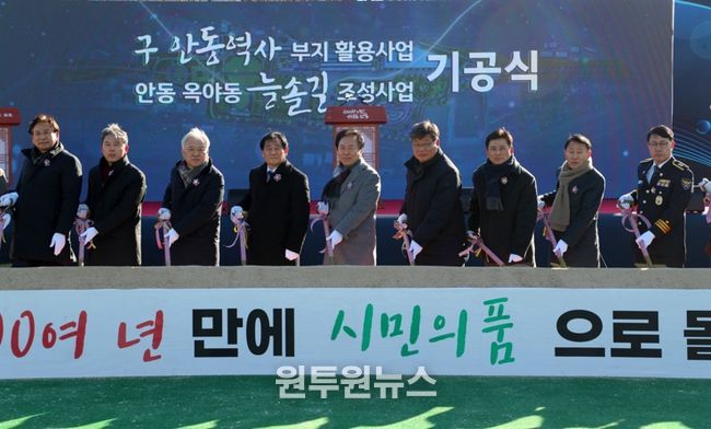 (원투원뉴스) 안동시는 12월 26일 구 안동역사부지 내 다목적공연장에서 ‘(구)안동역사부지 활용사업 및 안동 옥야동 늘솔길 조성사업’ 기공식을 개최하고, 본격적인 공사에 착수했다.
