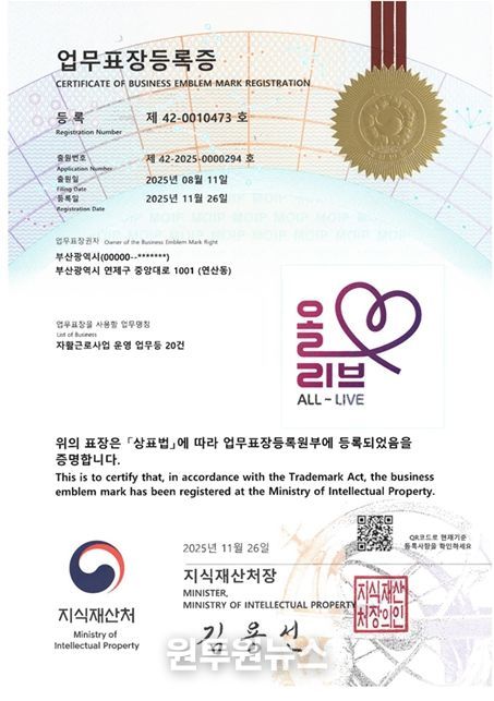 (원투원뉴스) 부산시는 지자체 최초로 시 대표 자활정책 브랜드인 '올리브(ALL-LIVE)'를 특허청에 상표로 등록했다고 밝혔다.