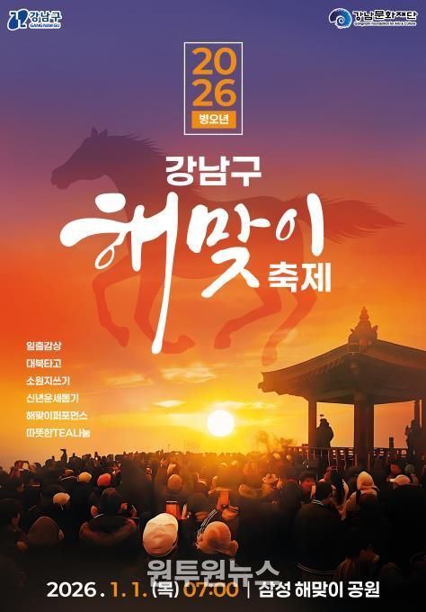 (원투원뉴스) 꿈이 모이는 도시, 미래를 그리는 강남구가 강남문화재단과 함께 2026년 1월 1일 오전 7시, 삼성해맞이공원에서 구민과 함께하는 ‘2026 새해 해맞이 행사’를 개최한다.