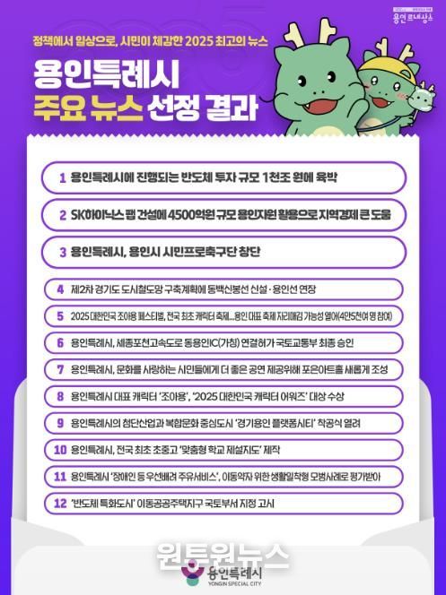 (원투원뉴스) 2025년 용인특례시를 빛낸 최고의 뉴스로 '반도체 투자규모 1000조 원에 육박'이 뽑혔다.