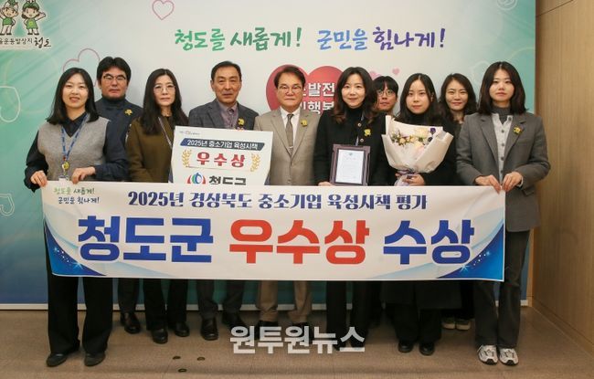 (원투원뉴스) 청도군이 지난 26일 경상북도가 주관한 ‘2025년도 중소기업 육성시책 시군 평가’에서 기업지원 성과를 인정받으며 ‘우수상’을 수상했다. 2024년 최우수 시군 선정에 이어 올해도 좋은 평가를 받으며 기업 지원 정책의 연속성과 실효성을 다시 한 번 입증했다.