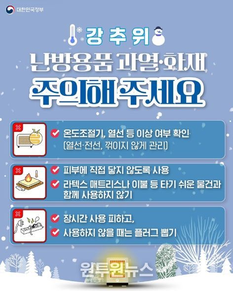 (원투원뉴스) 강추위, 난방용품 과열·화재 주의해주세요.
