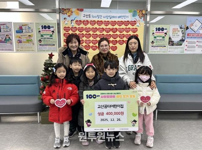 이봉득 동장은 “고산꿈터어린이집의 따뜻한 정성에 깊이 감사드린다”며 “성금은 도움이 필요한 가정에 잘 전달하겠다”고 말했다.