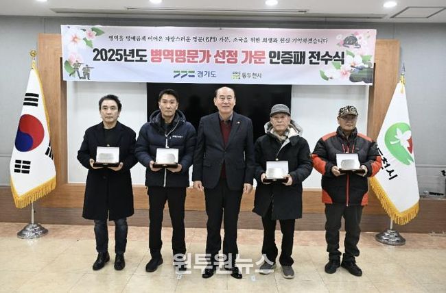 (원투원뉴스) 동두천시는 지난 12월 26일 시청에서 2025년도 병역명문가로 선정된 가문을 초청해 인증패 전수식을 개최했다.