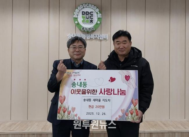 (원투원뉴스) 동두천시 송내동 새마을지도자는 지난 26일 지역 내 어려운 이웃을 돕기 위해 성금 20만 원을 송내동 행정복지센터에 기탁했다고 밝혔다.