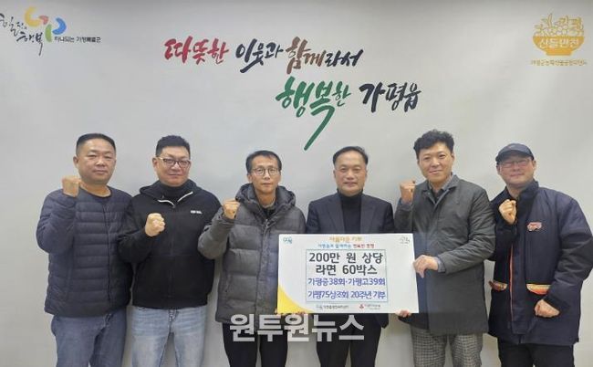 (원투원뉴스) 가평75상조회는 최근 가평읍 행정복지센터를 방문해 이웃돕기 성품으로 200만 원 상당의 라면 60박스를 기탁했다.